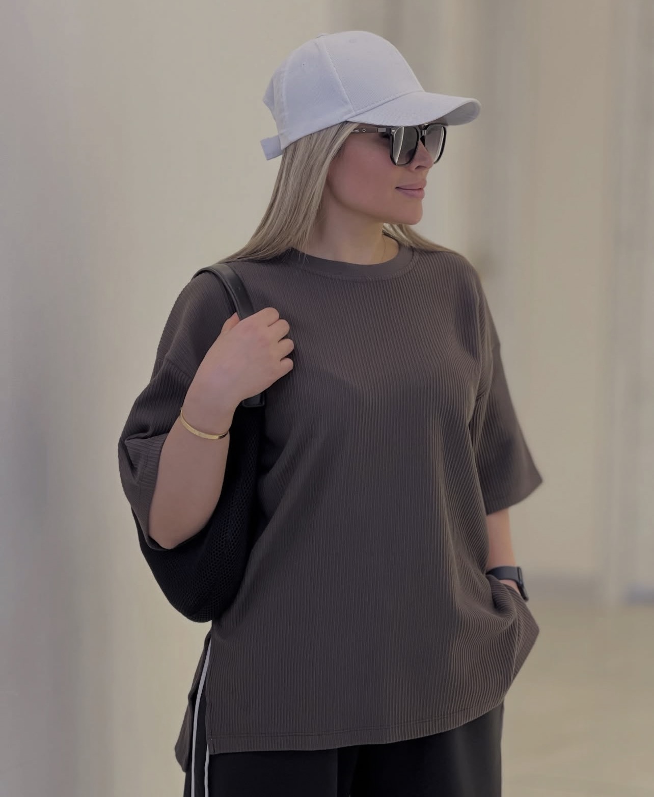 تیشرت زنانه موکا بغل چاکدار طرح زارا