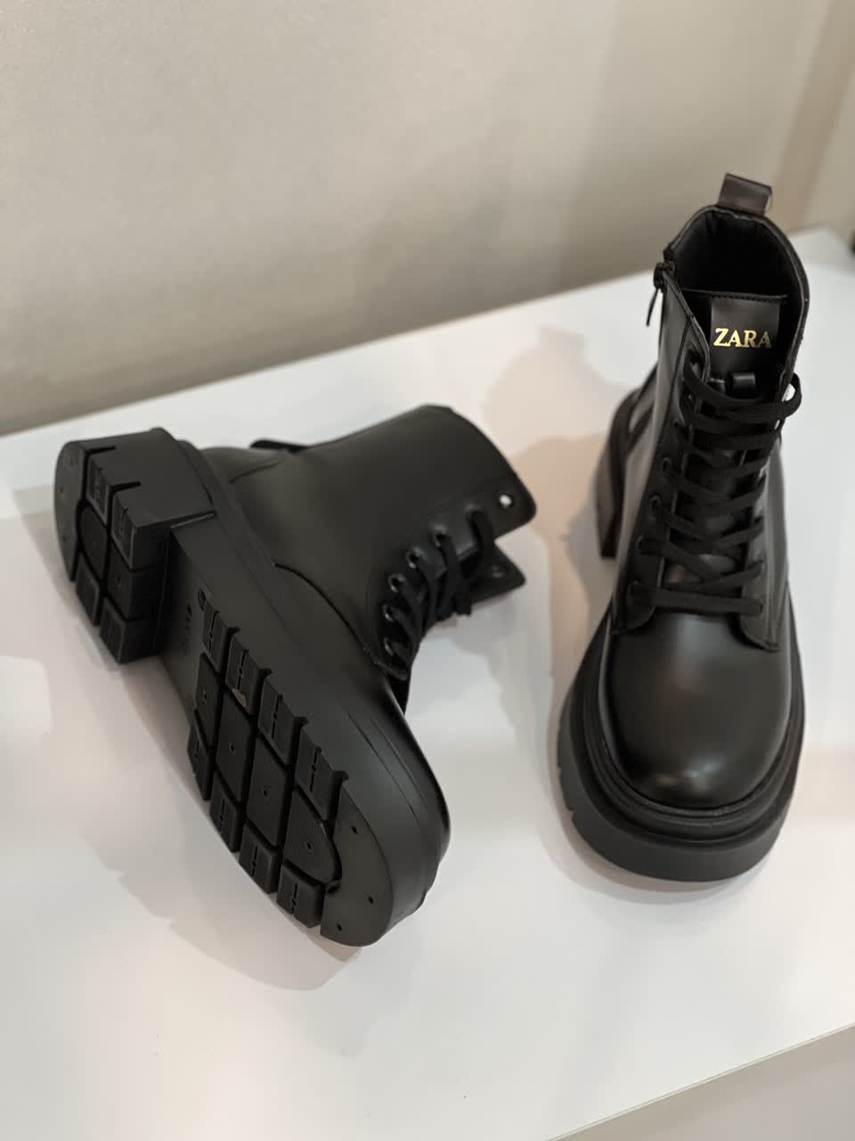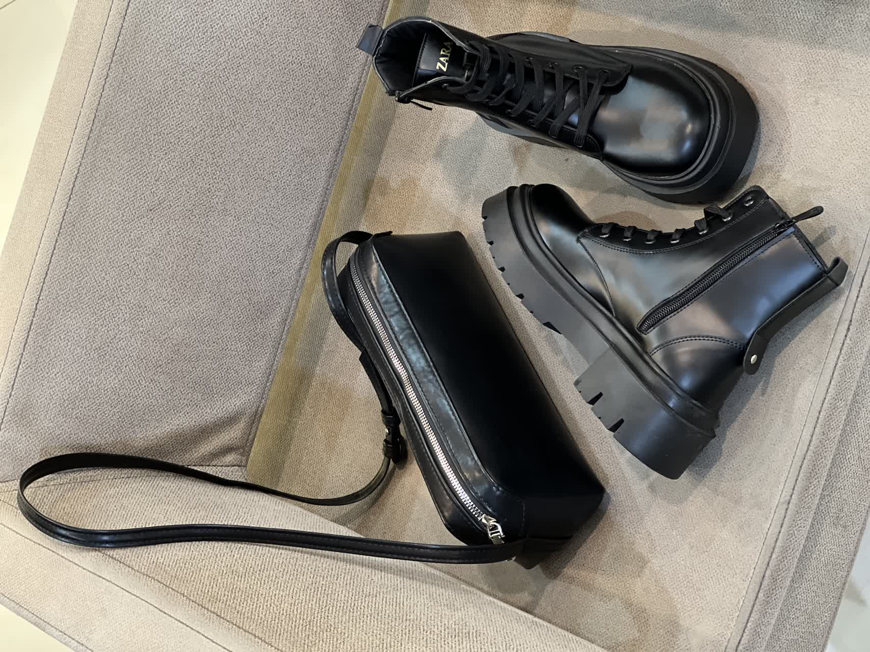 بوت بندی زنانه چرم ساده مشکی طرح زارا