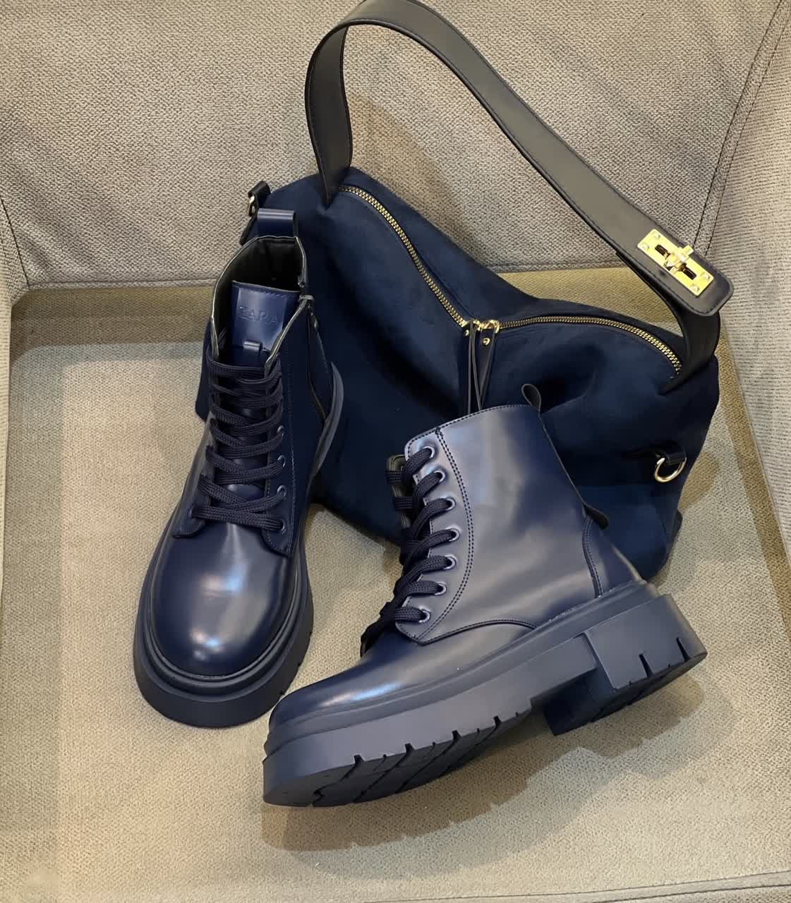 بوت بندی زنانه چرم سورمه ای طرح زارا