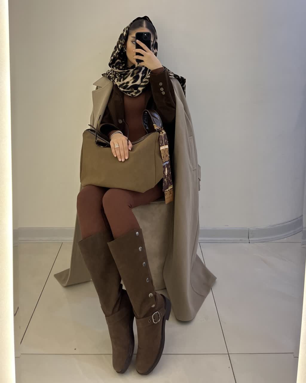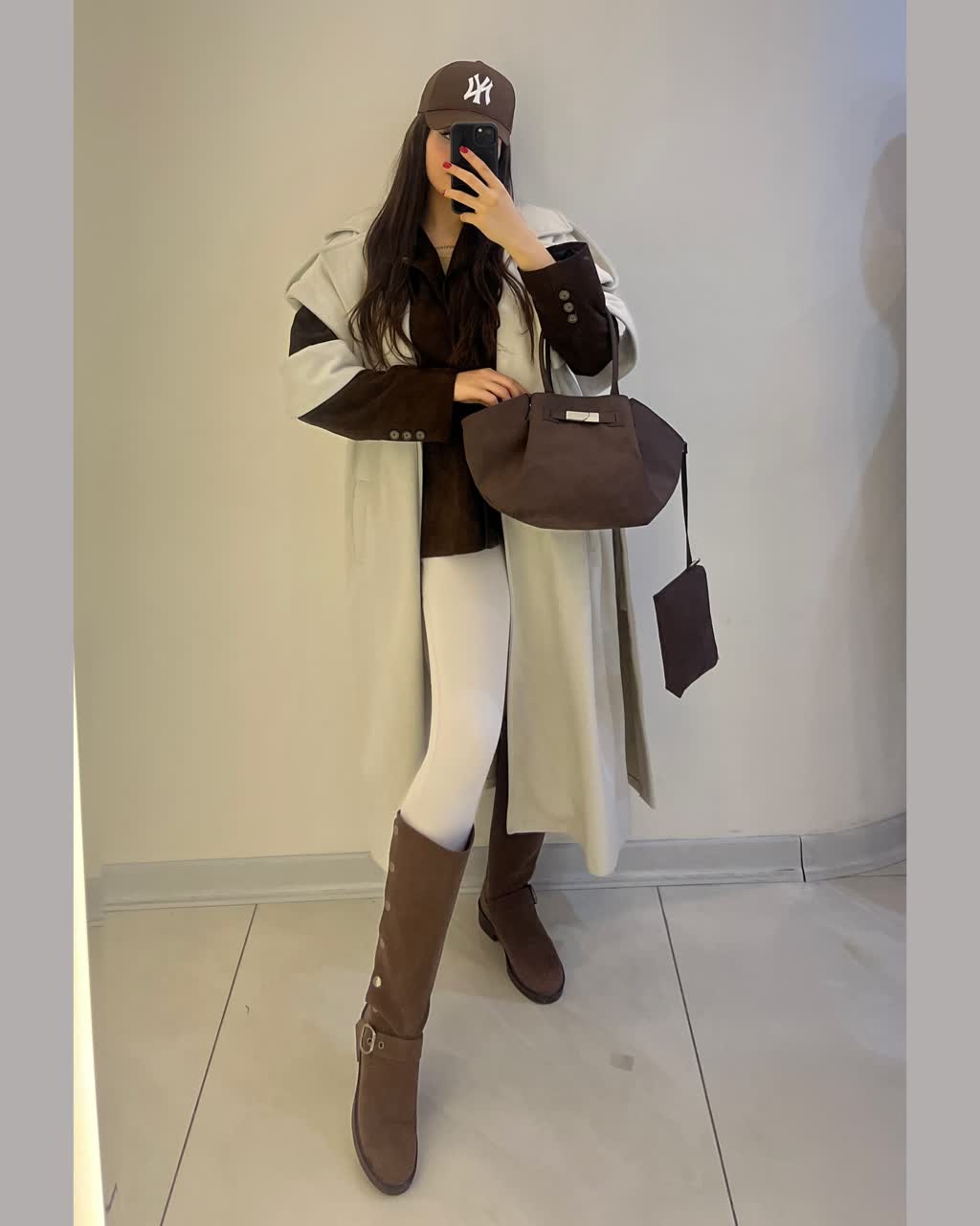 بوت بلند زنانه جیر بغل دکمه قهوه ای