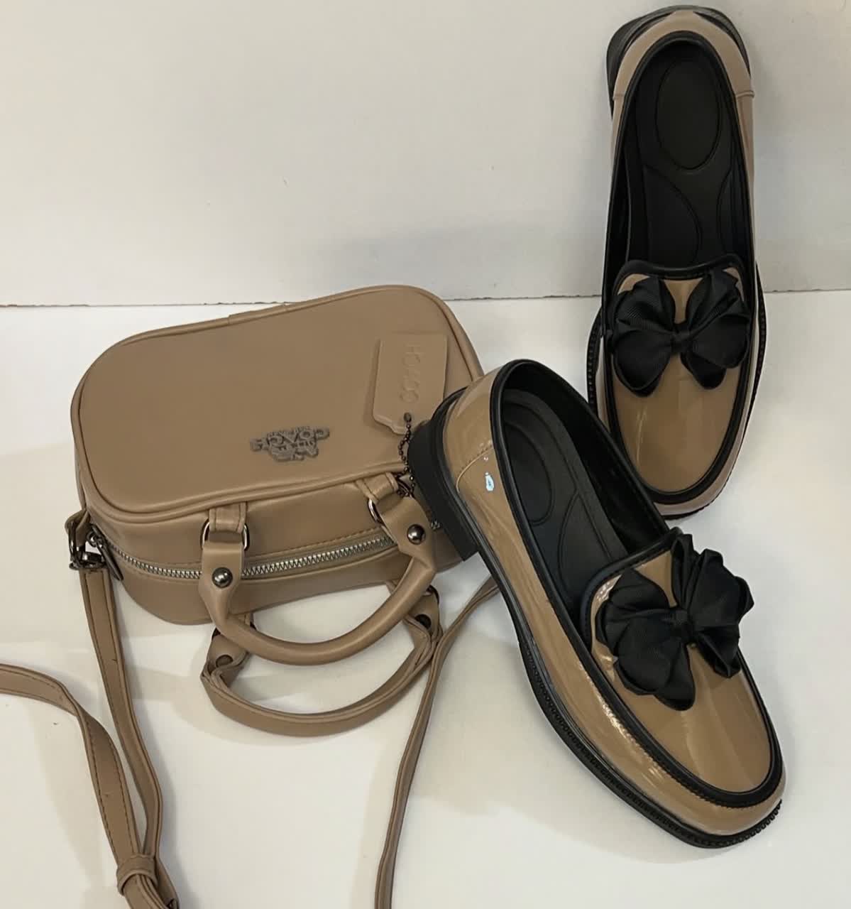 کفش زنانه مدل کالج ورنی پاپیونی نسکافه ای