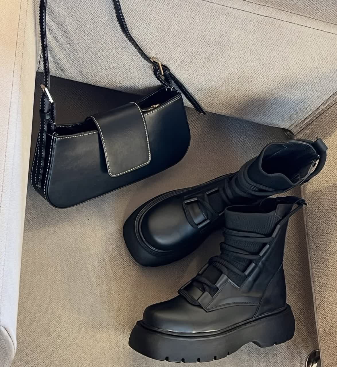 بوت بندی زنانه بالا کشباف مشکی لژدار بغل زیپ