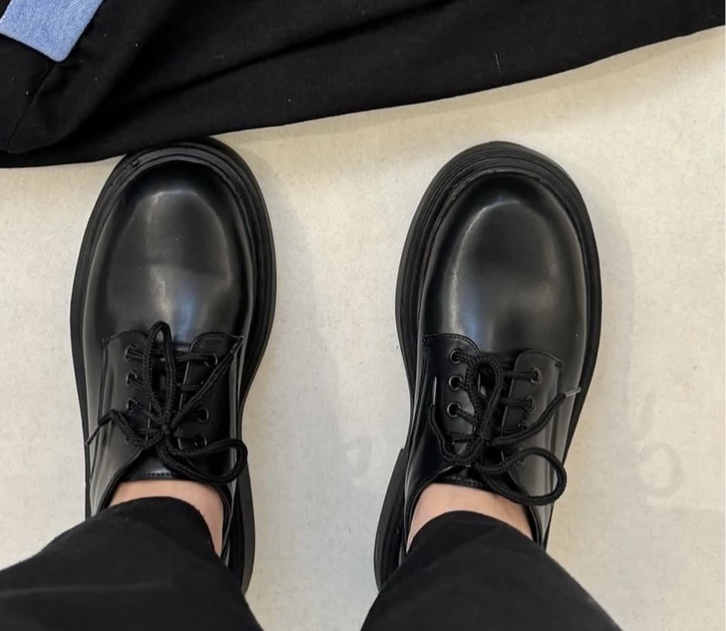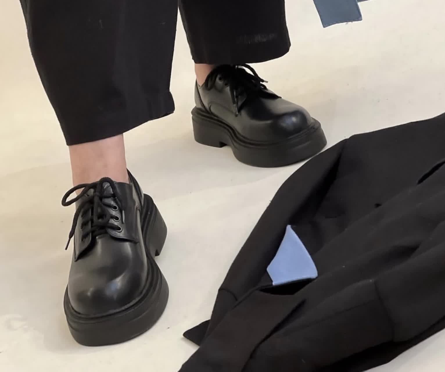 کفش زنانه مدل لوفر چرم ساده مشکی بندی