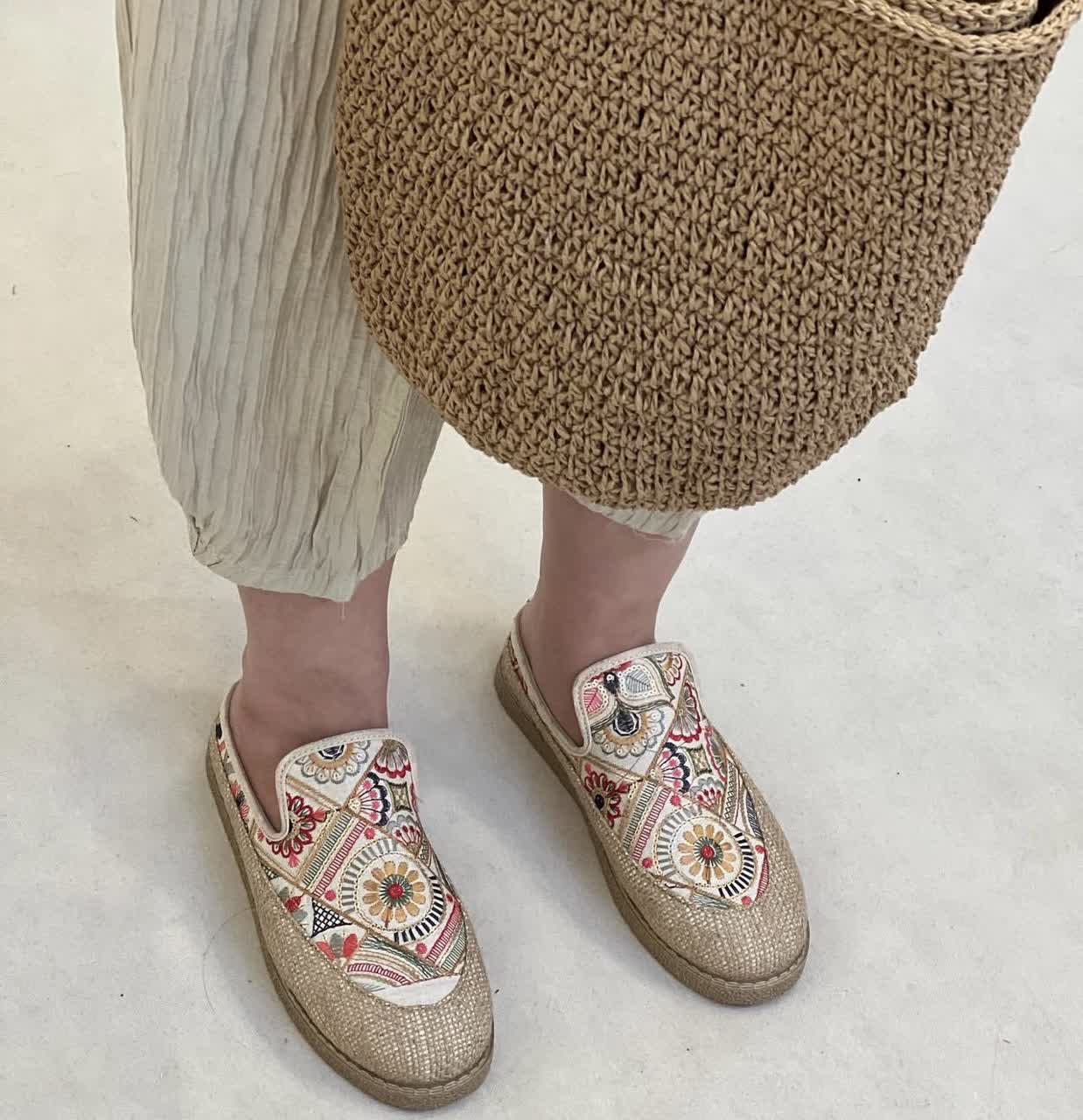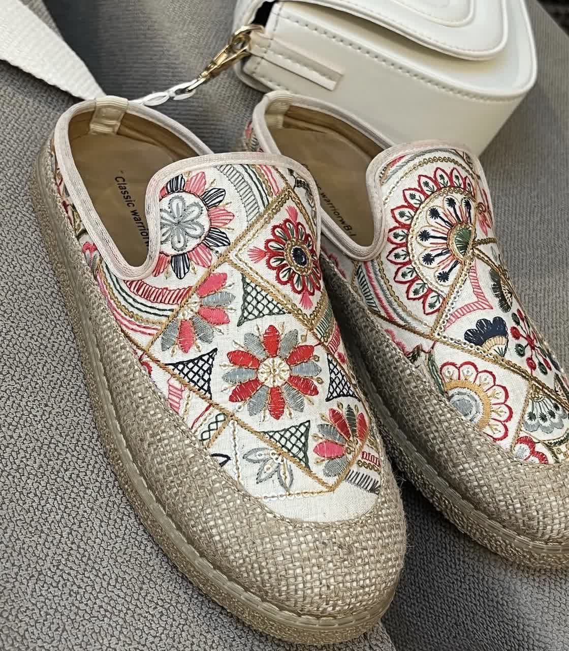صندل زنانه مدل اسلیپر سنتی کنفی کرم پولک طلایی