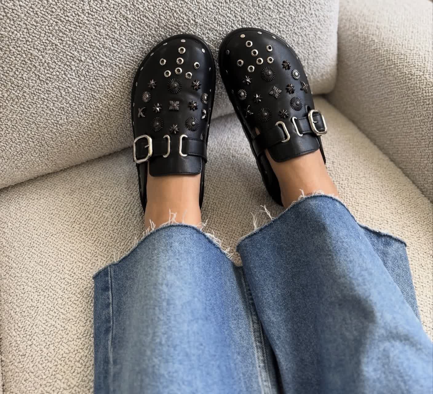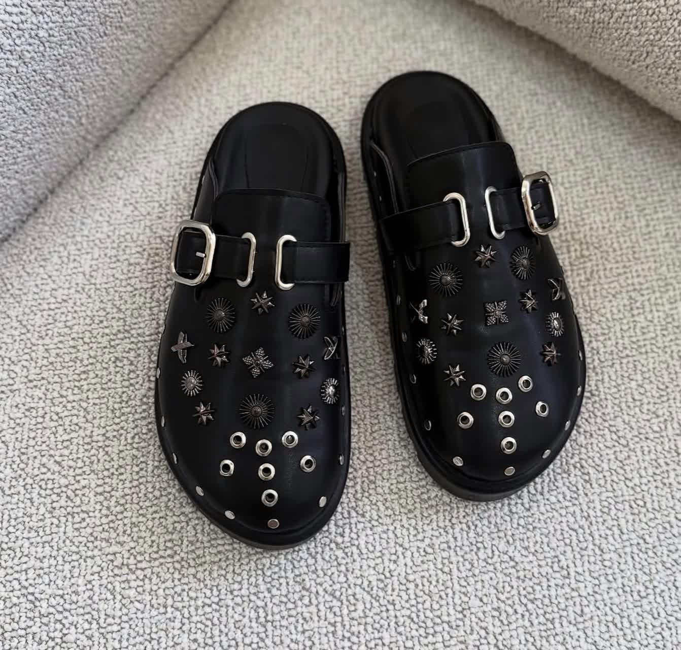 صندل زنانه اسلیپر پرچی چرم مشکی