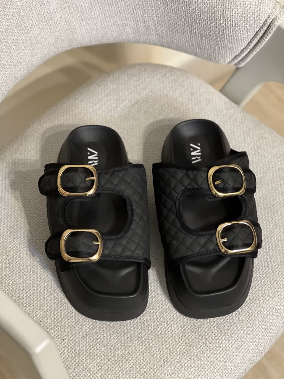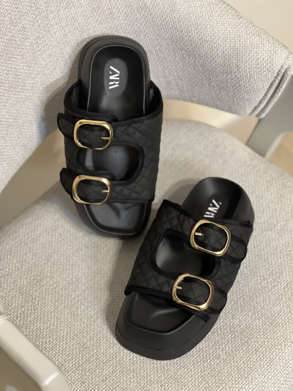 صندل زنانه چرم رو دوخت لژ 5 سانت سگک طلایی طرح زارا