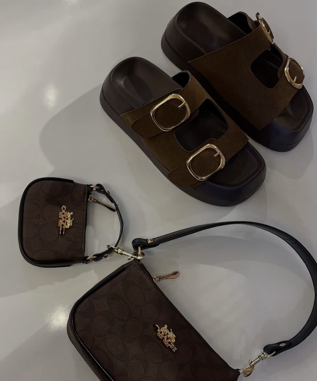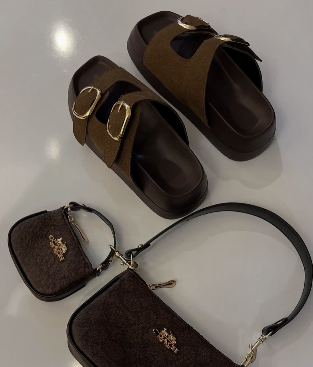 صندل زنانه جیر قهوه ای لژ 5 سانت سگک طلایی طرح زارا