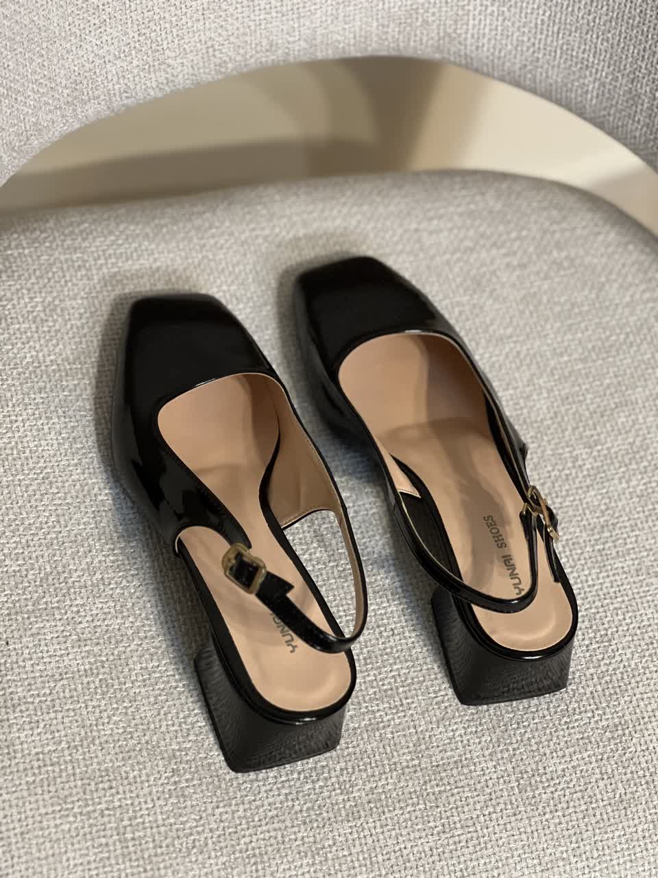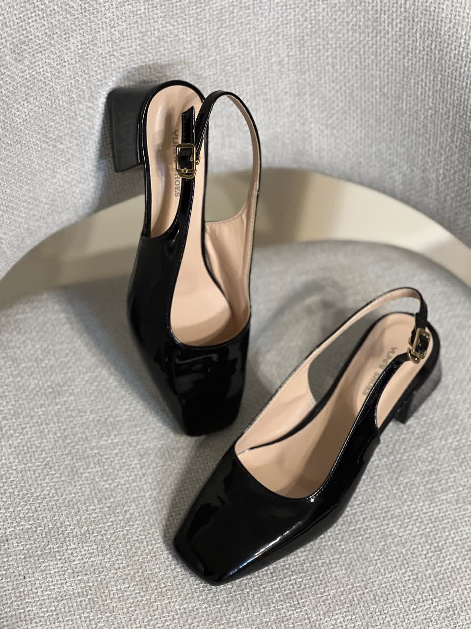 کفش کالج ورنی مشکی پشت بندی پاشنه 5 سانت