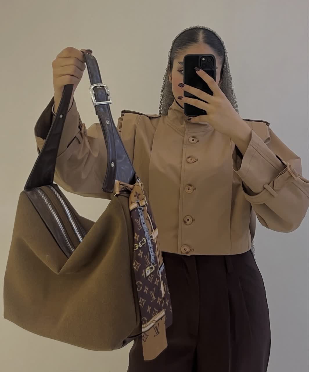 کیف زنانه جیر قهو ه ای دسته چرم دوزیپ نقره ای ترکیبی جیر و چرم