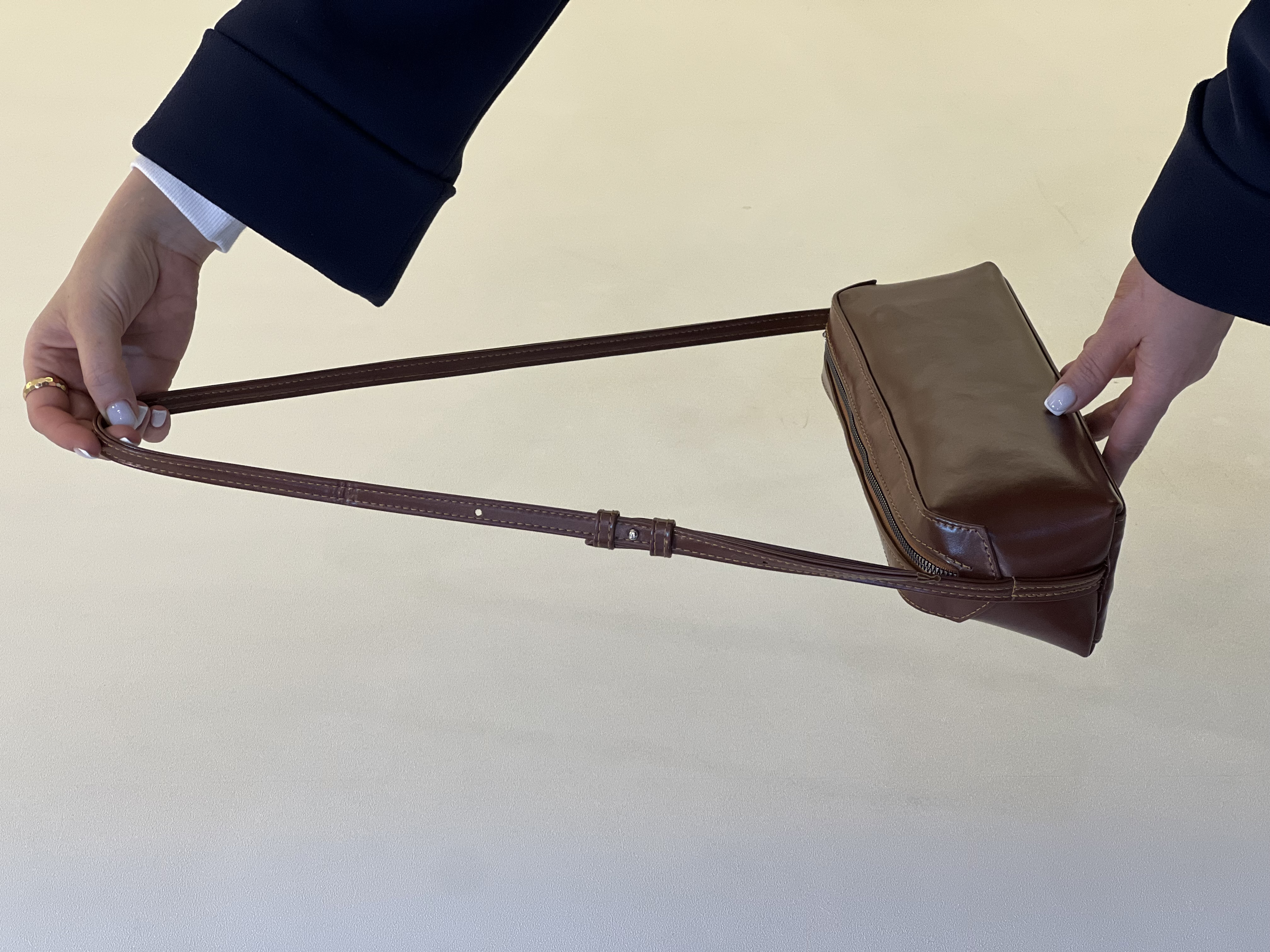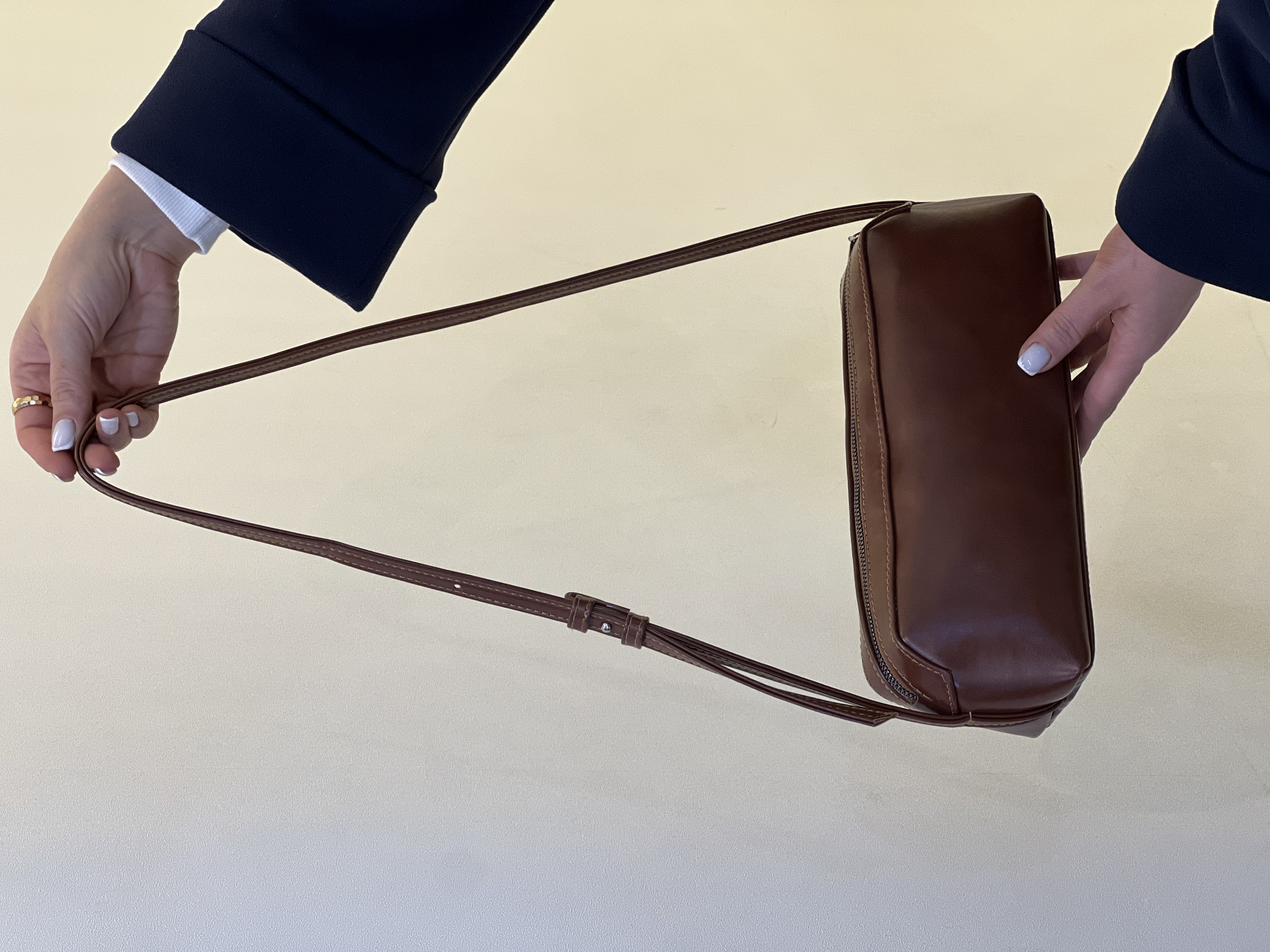 کیف زنانه چرم قهوه ای عسلی ساده طرح زارا