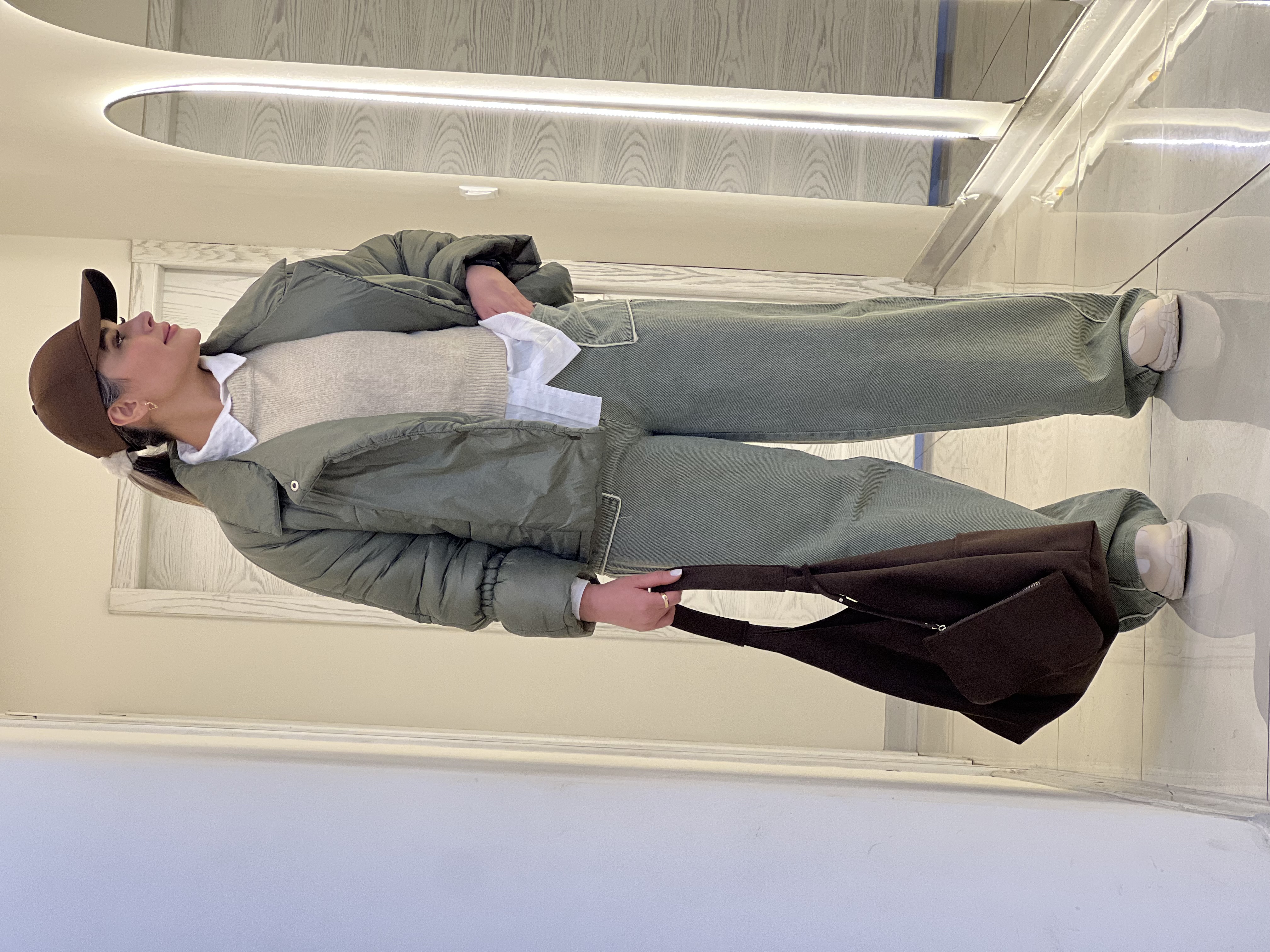 شلوار بگ زنانه کتون سبز ماچا قد ١١٠ بغل مغزی دوزی سفید