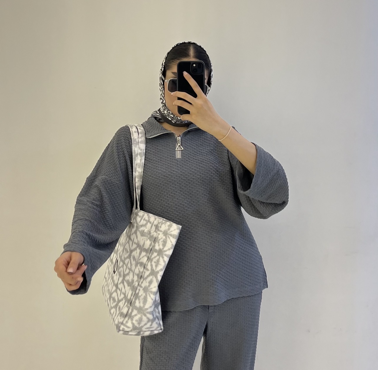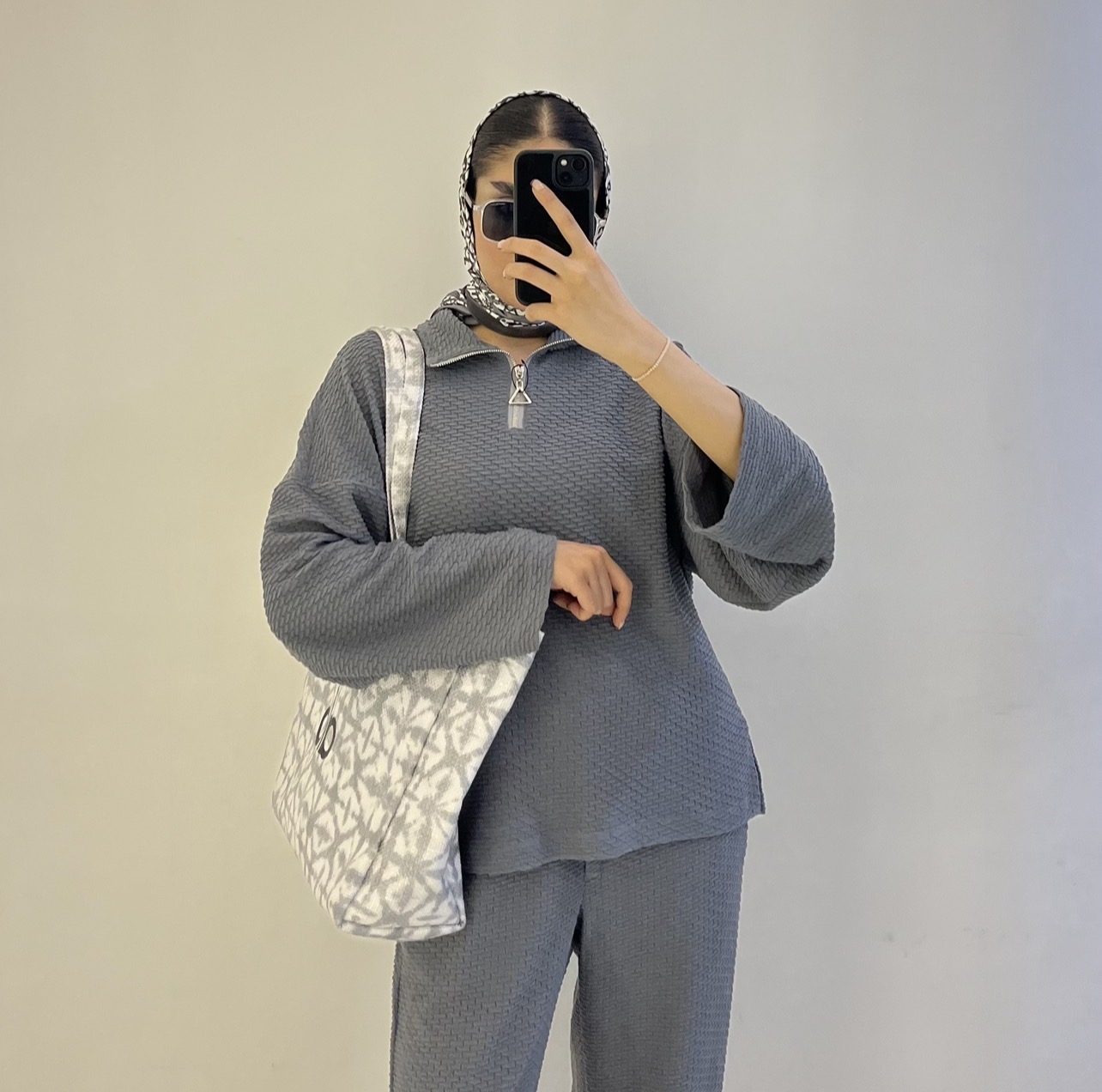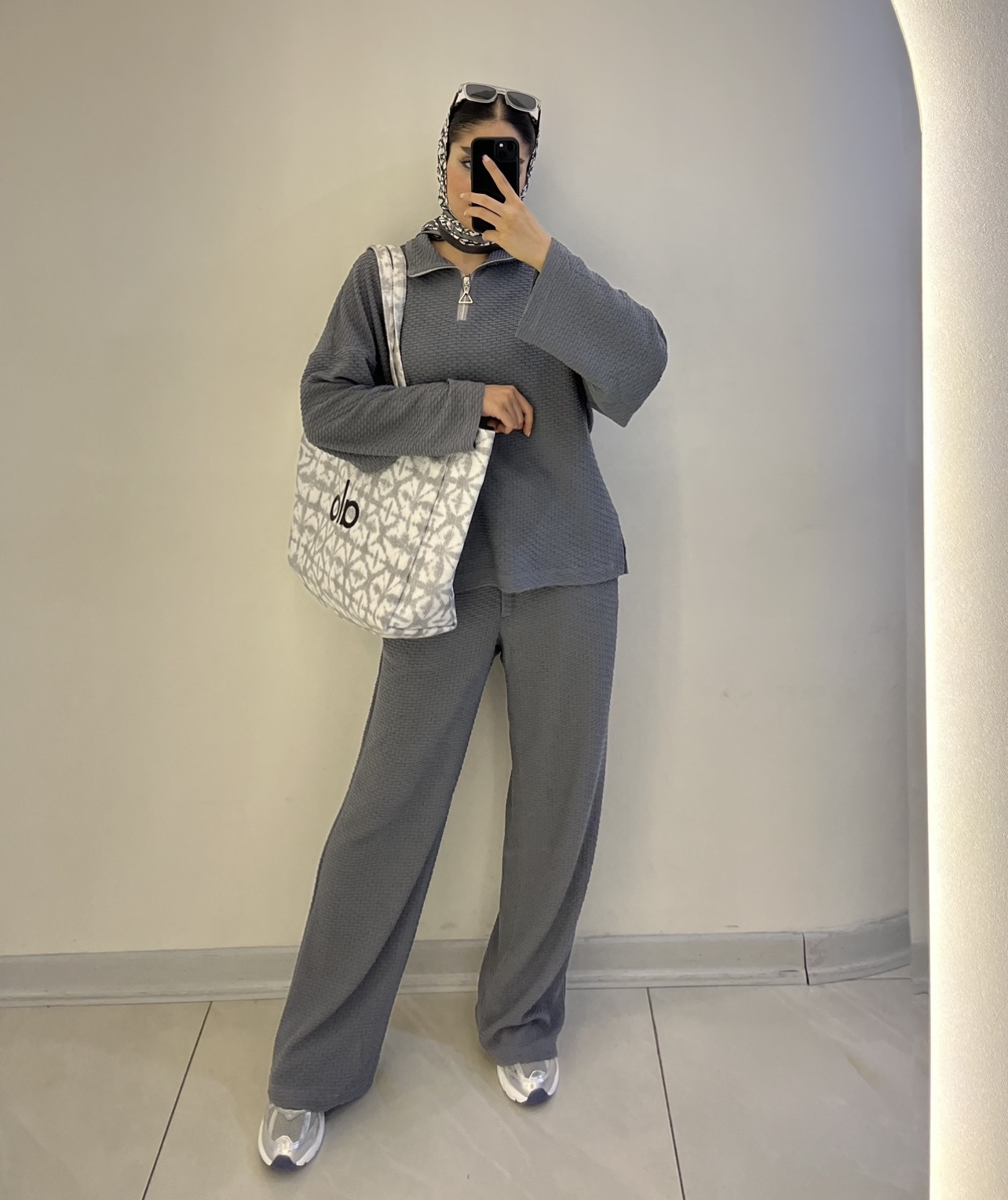 ست بلوز نیم زیب و شلوار طوسی بهاره