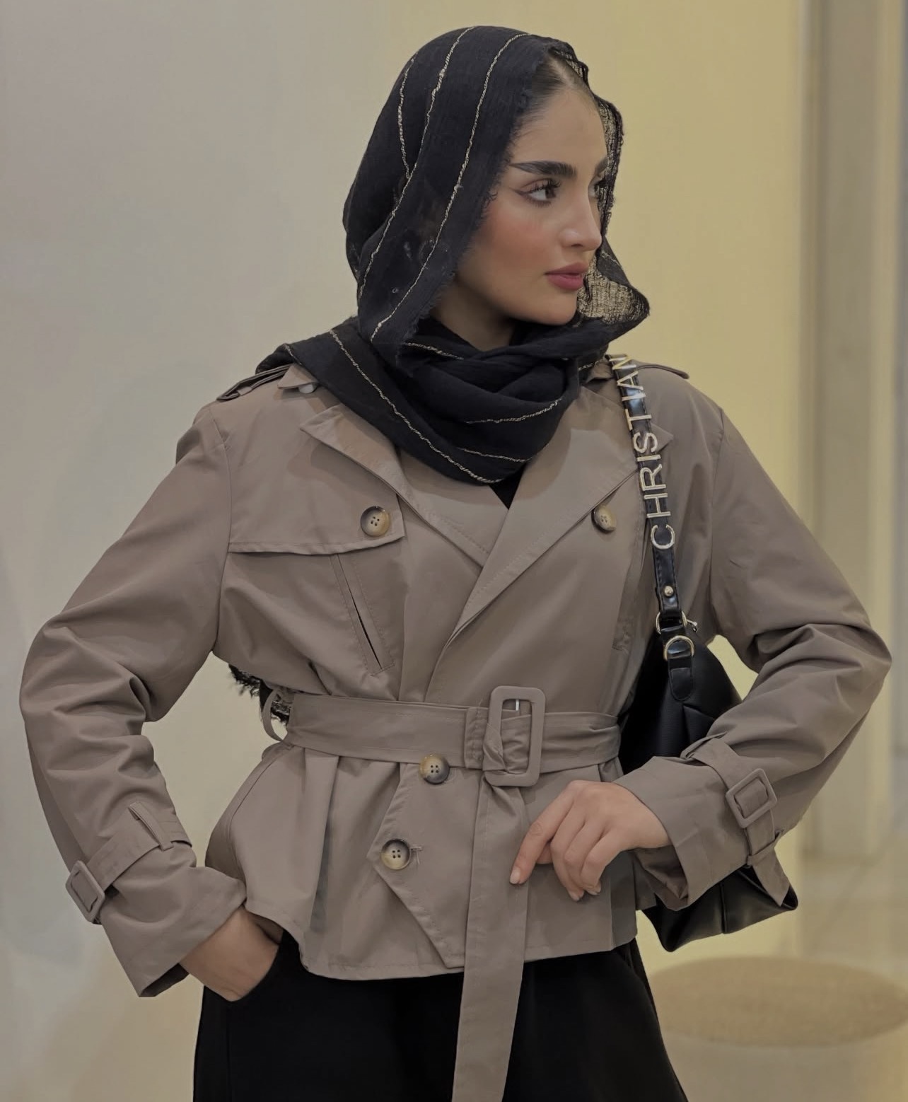 کت زنانه بهاره آستر دار کتون زارا نسکافه ای مدل یقه انگلیسی پشت پیله
