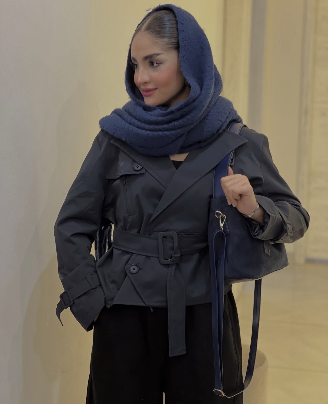 کت زنانه بهاره آستر دار کتون زارا سورمه ای مدل انگلیسی پشت پیله