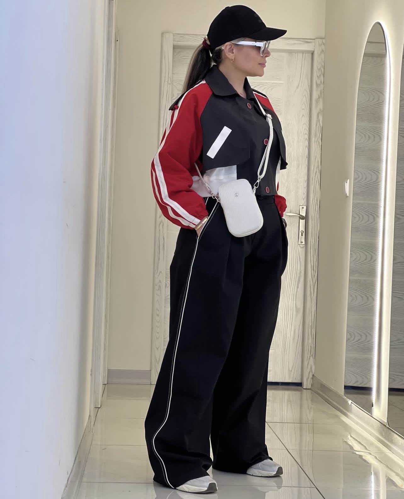 شلوار زنانه کتون مشکی مدل بگ بغل خط دار قد ١١٠