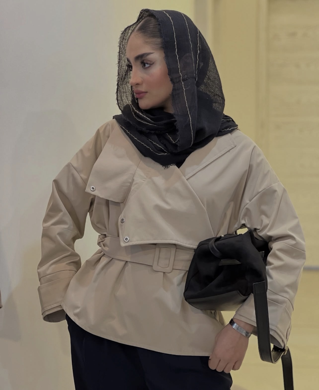 ترنچ کت بهاره کتون زارا کرم استخونی یقه ایستاده دکمه پرسی