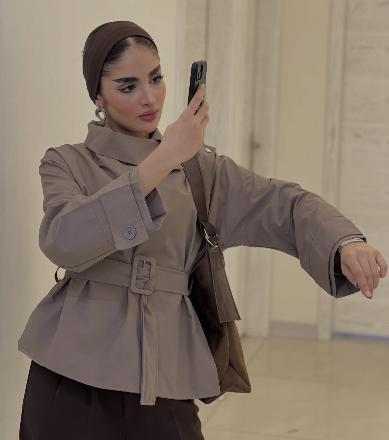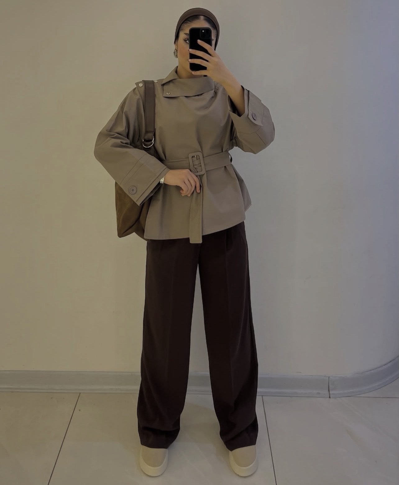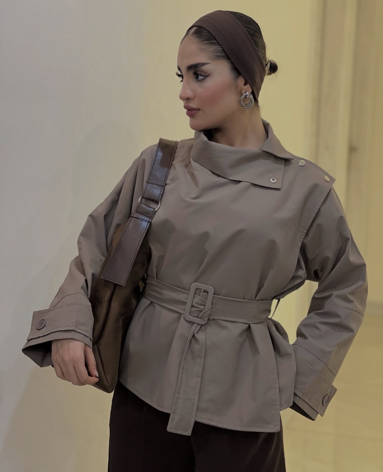ترنچ کت بهاره کتون زارا نسکافه ای یقه ایستاده دکمه پرسی