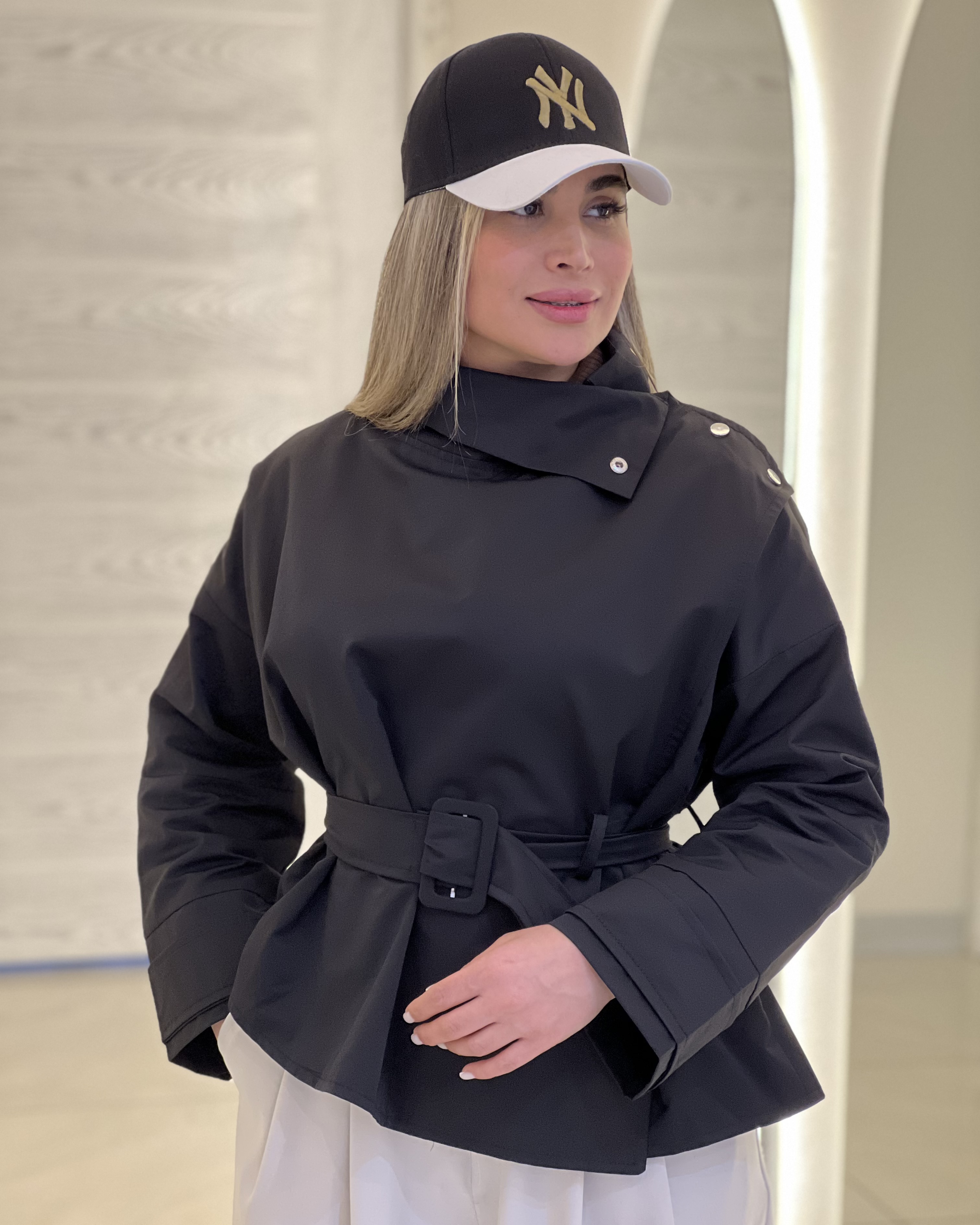 ترنچ کت بهاره کتون زارا مشکی یقه ایستاده دکمه پرسی