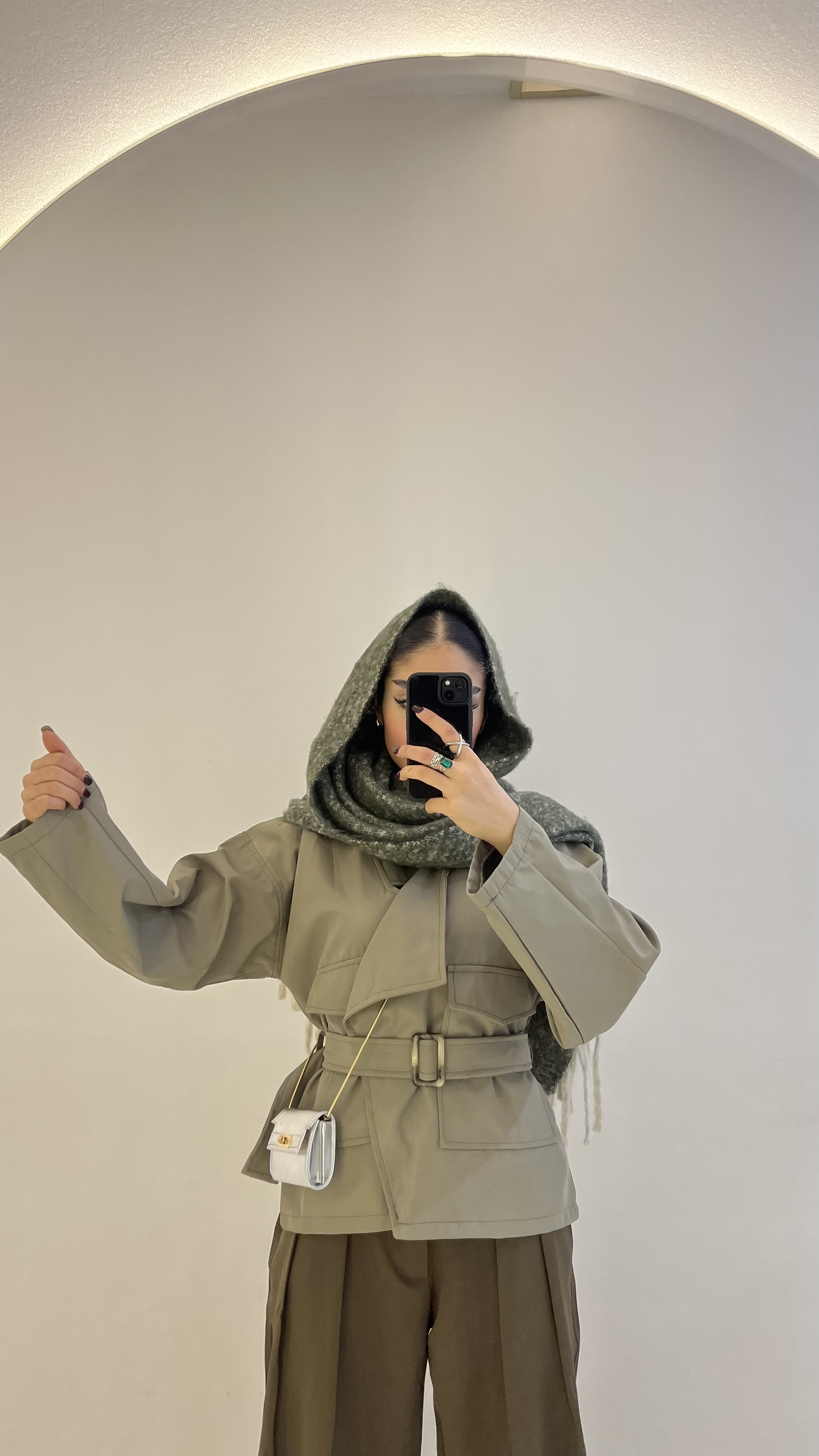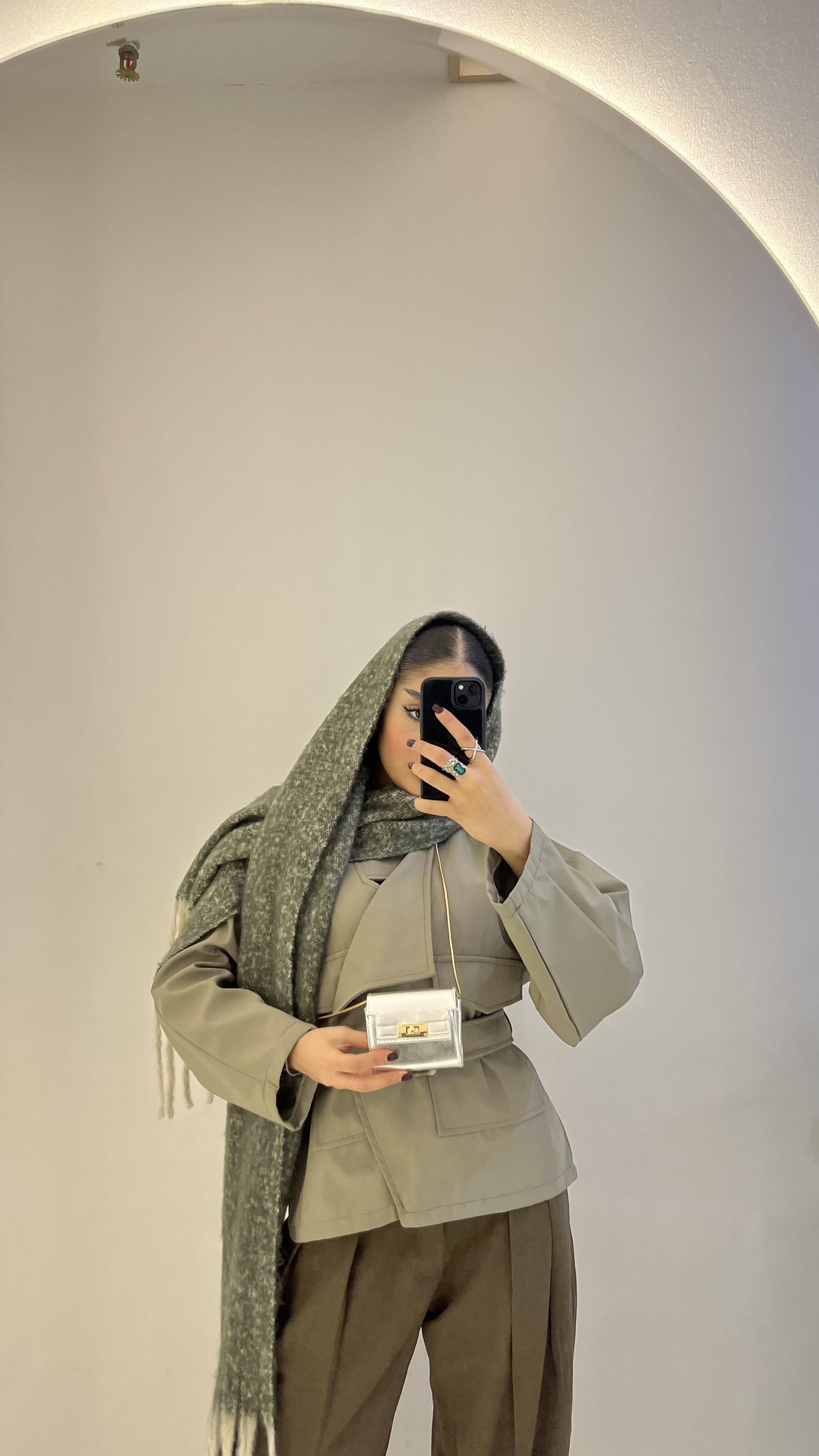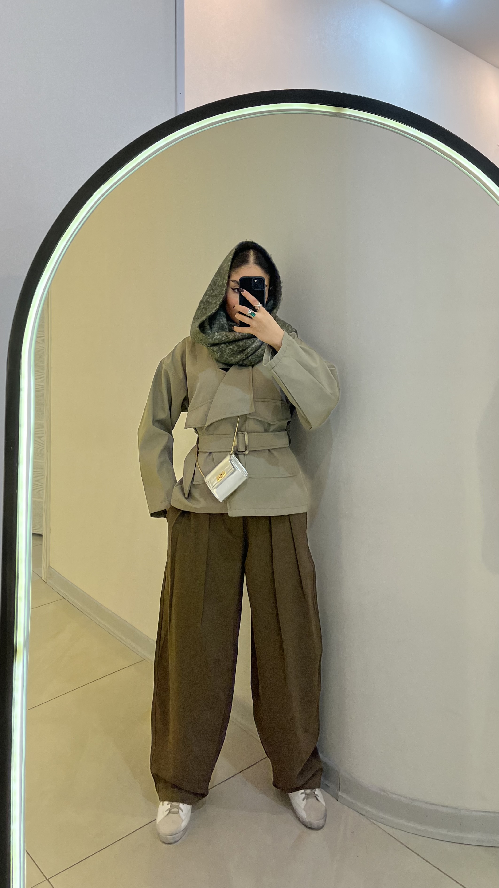 کت زنانه بهاره مدل خاص یقه کج سبز ماچا