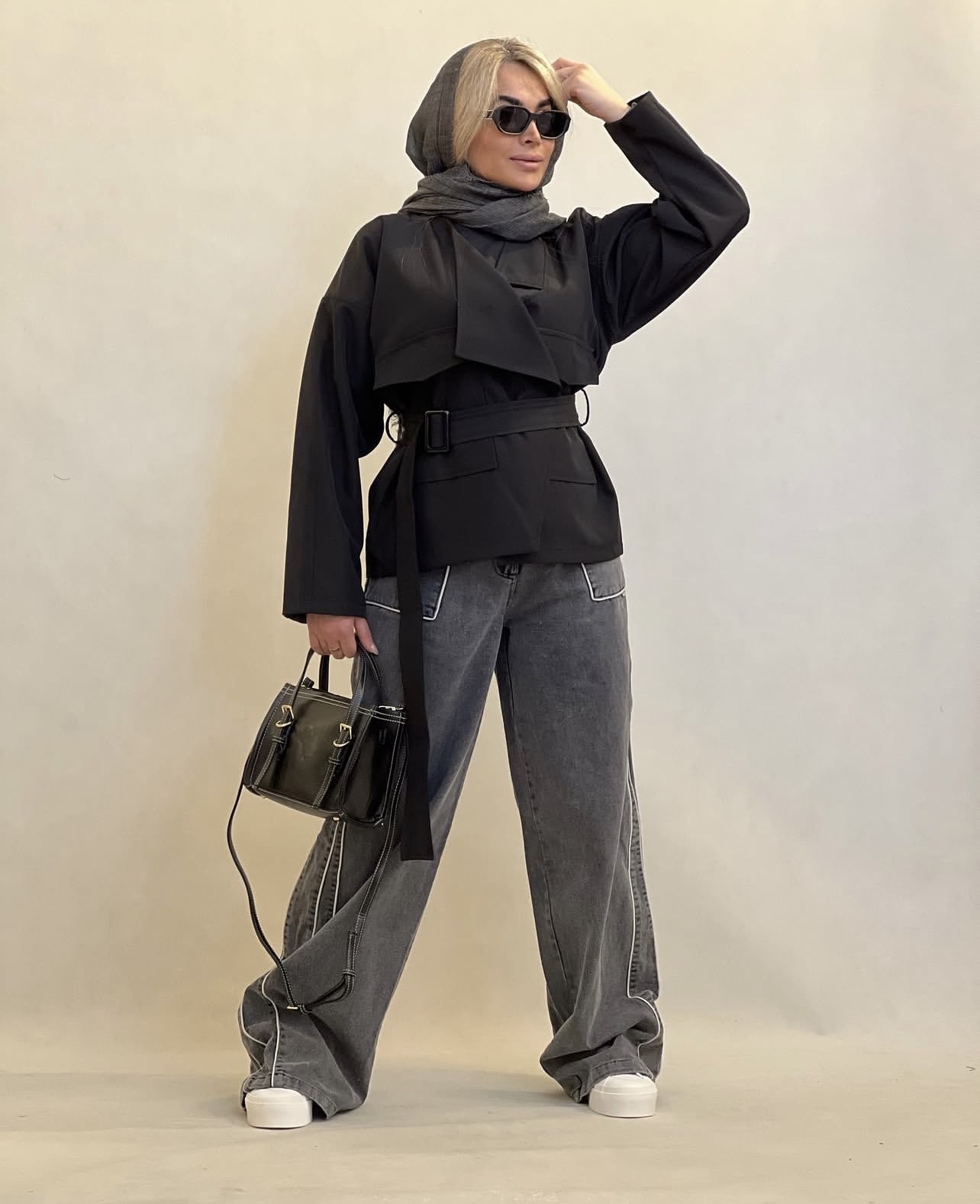کت زنانه بهاره مدل خاص یقه کج مشکی