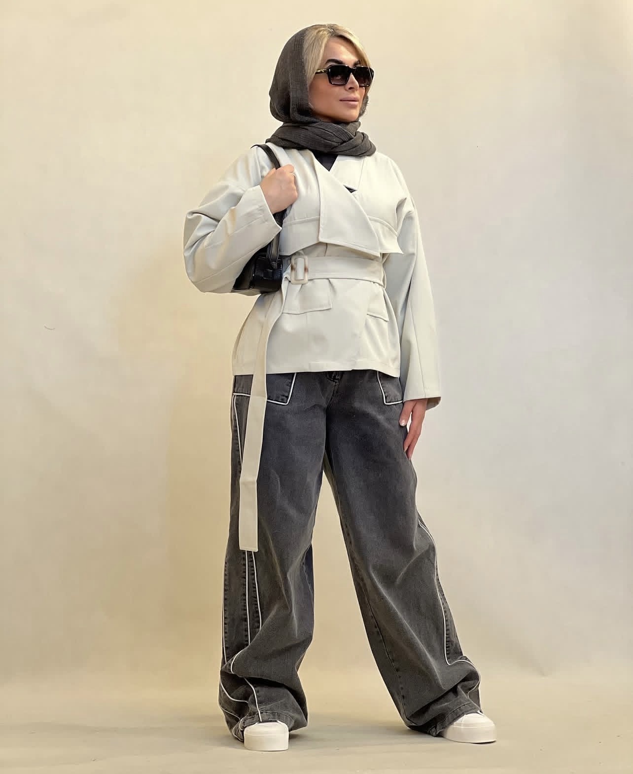 کت زنانه بهاره مدل خاص یقه کج کرم استخونی