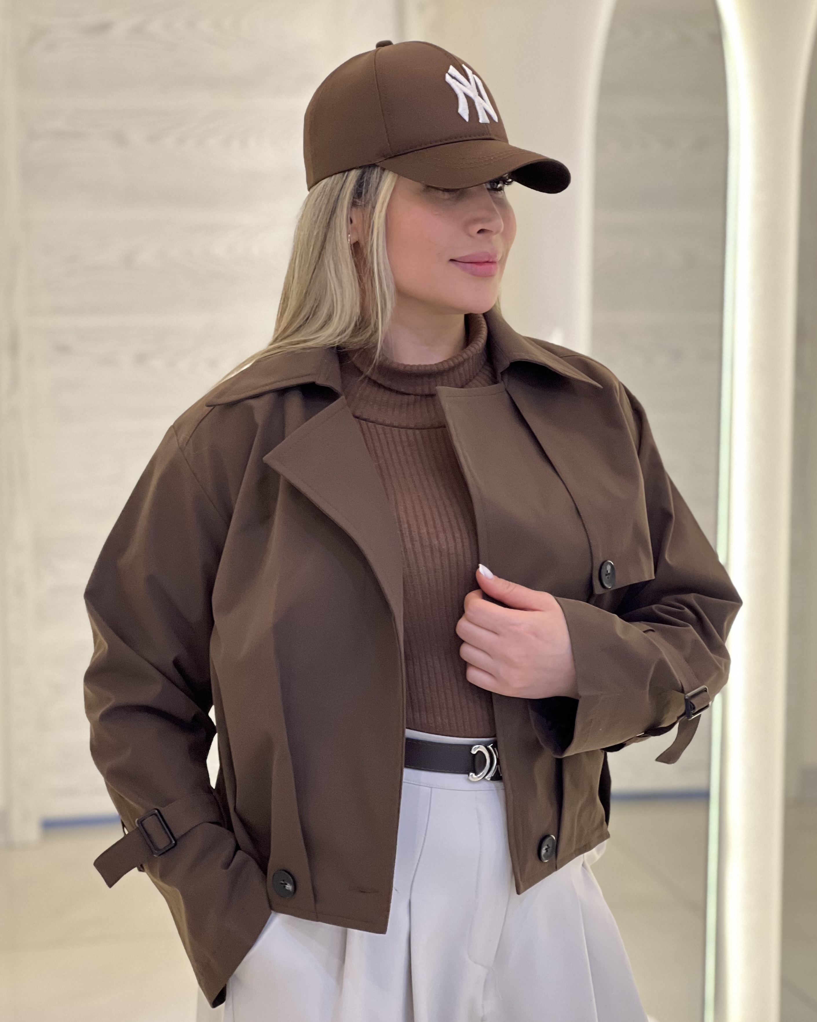 کت بهاره زنانه مدل قارچی کتون زارا قهوه ای کد ١٠