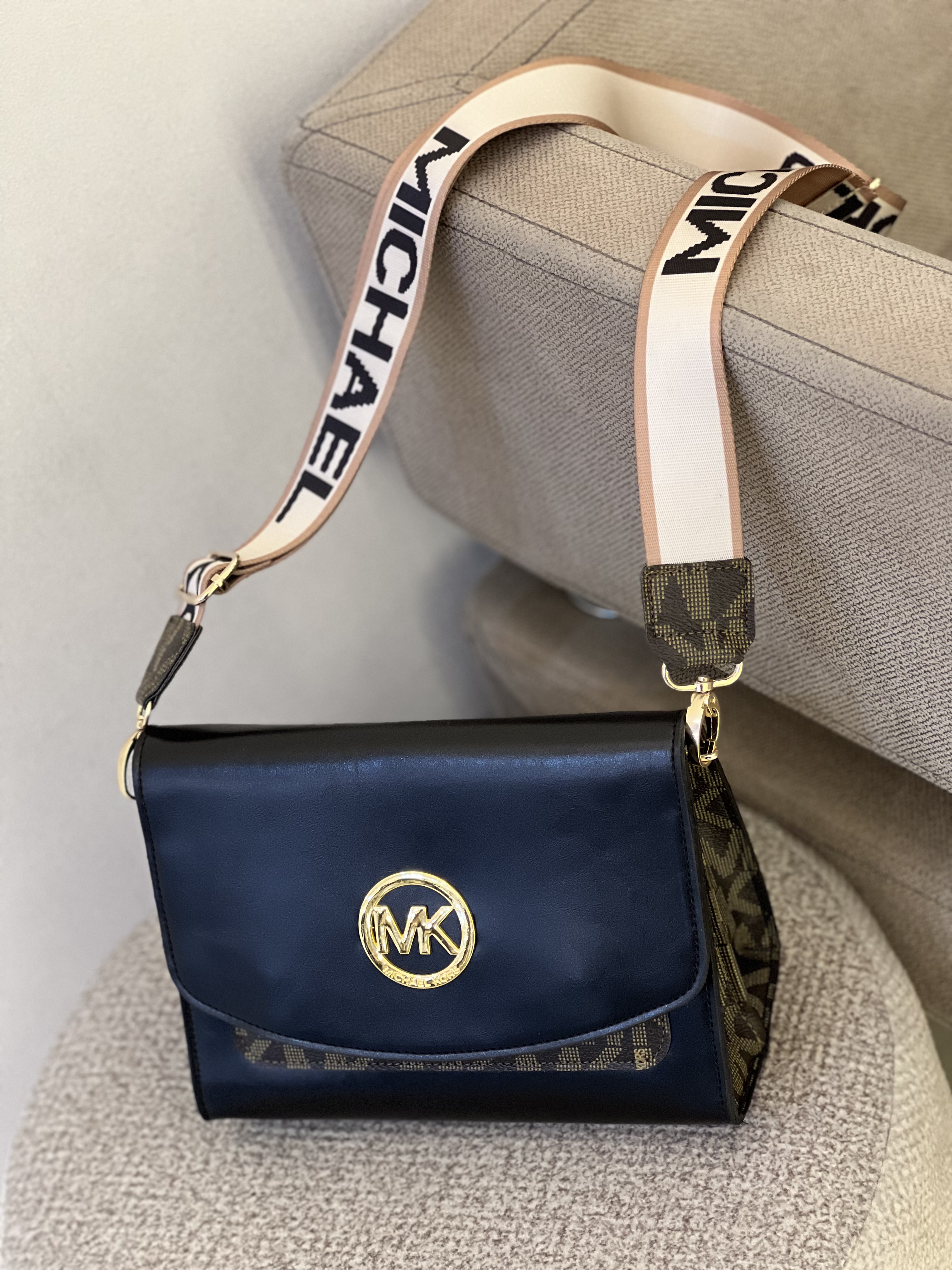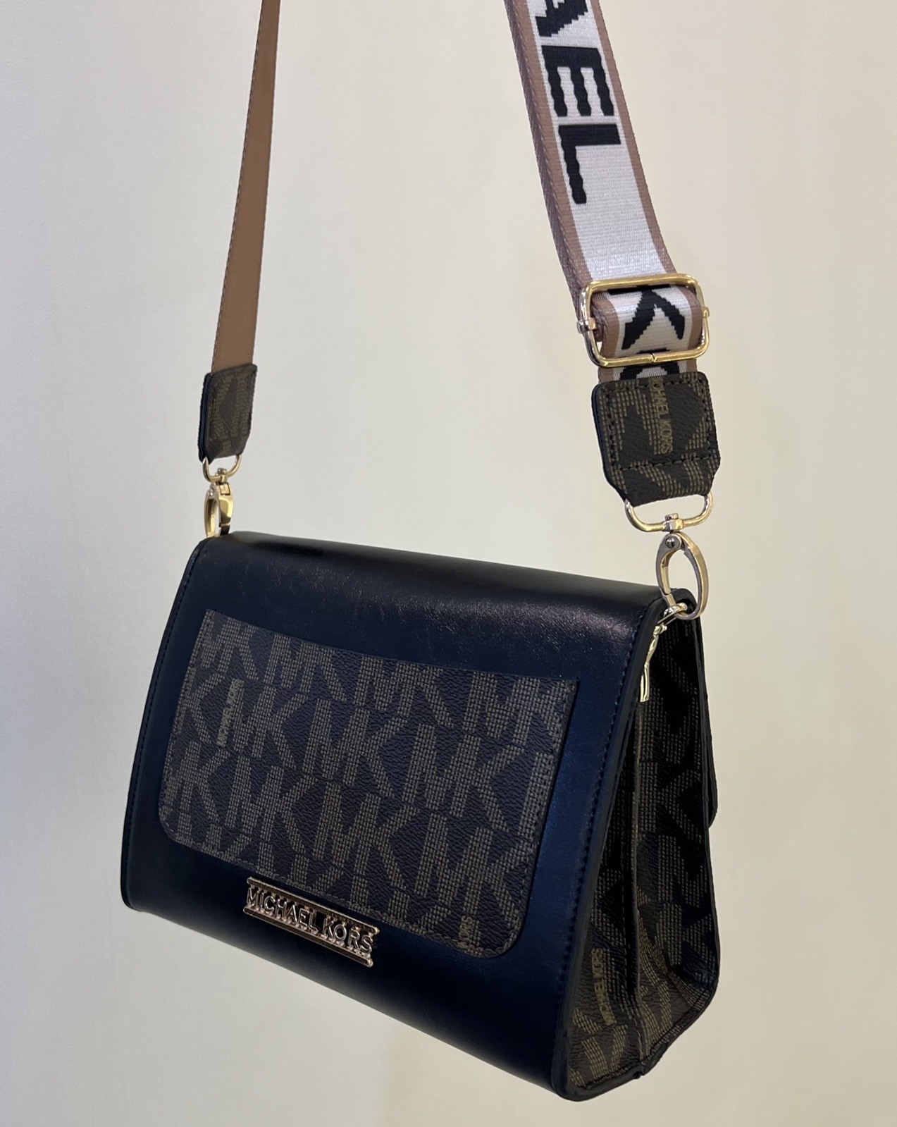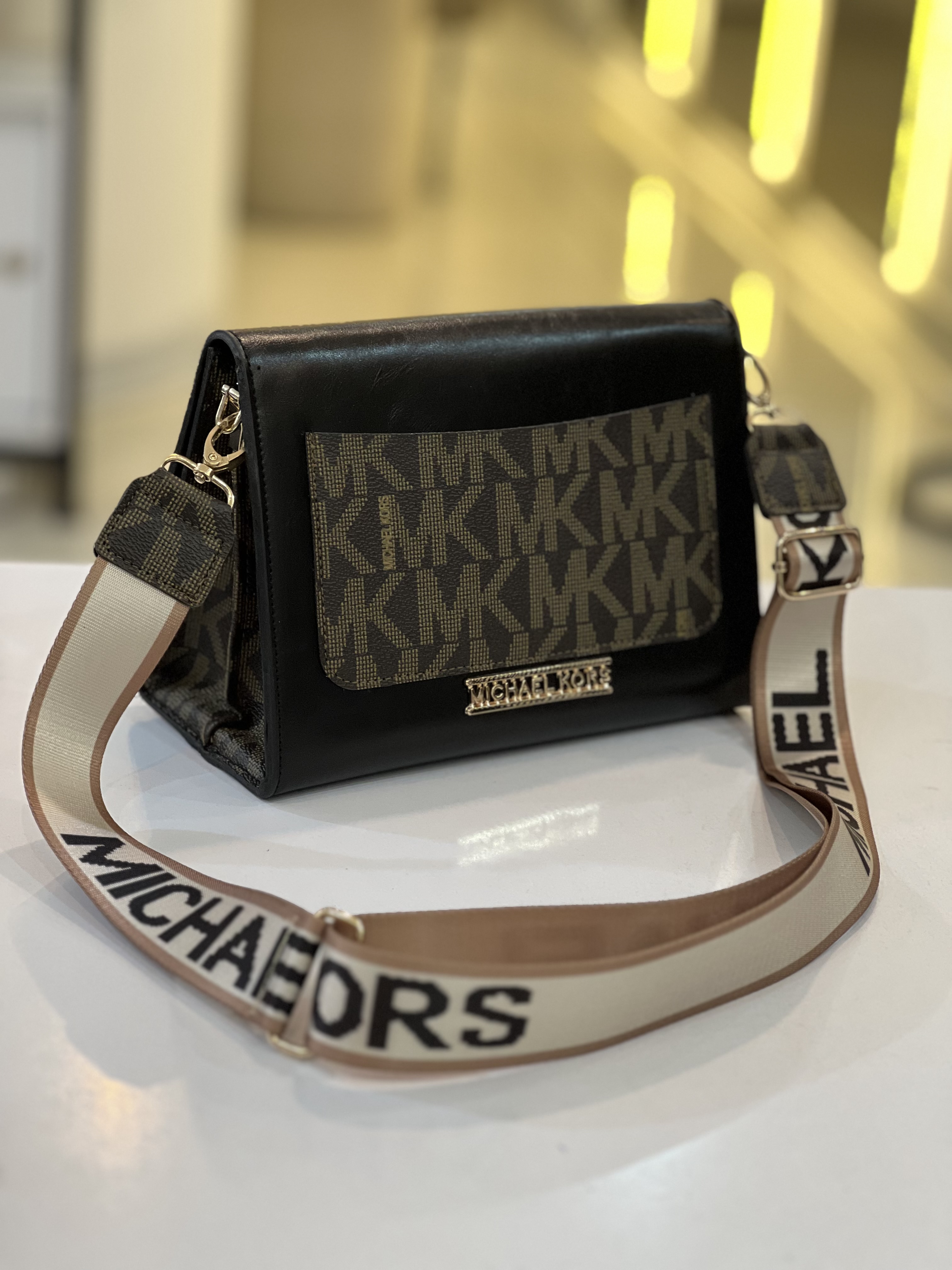 کیف زنانه مدل صندوقی طرح مایکل کورس چرم مشکی-قهوه ای کد ٢٣