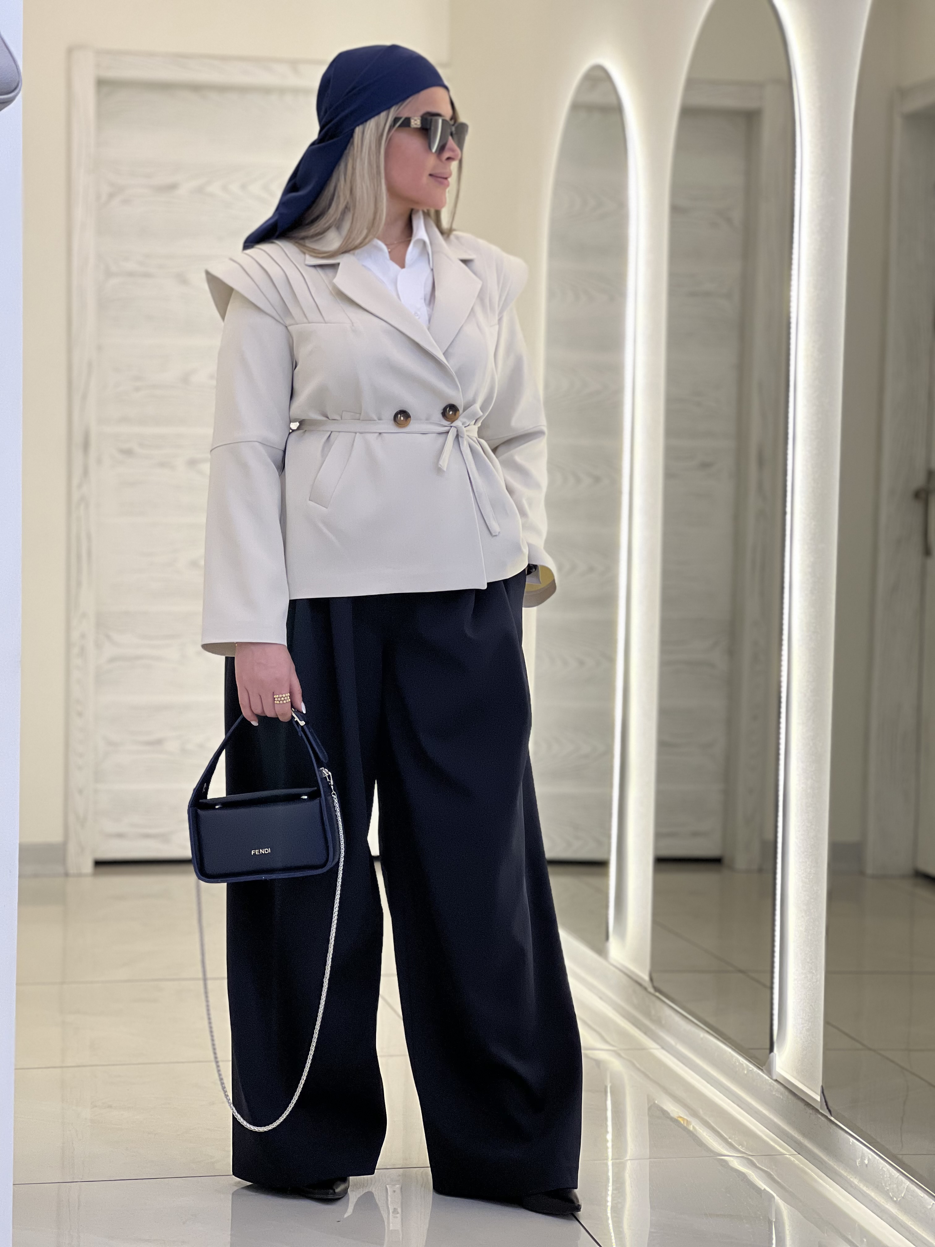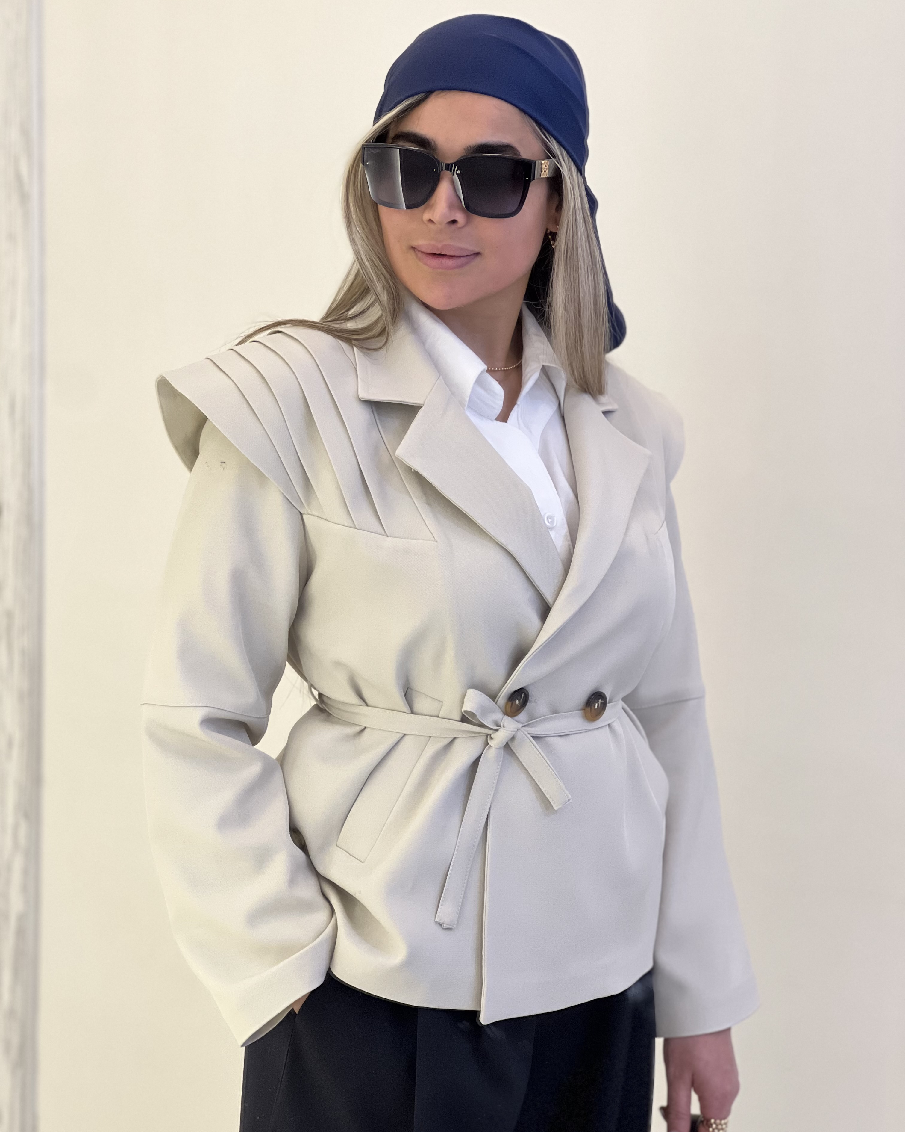 کت زنانه مدل سرشانه پیله کرم استخونی کد ٢٨