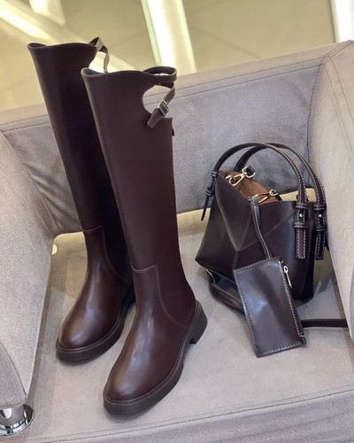 ناموجودبوت زنانه بلند ساده چرم قهوه ای