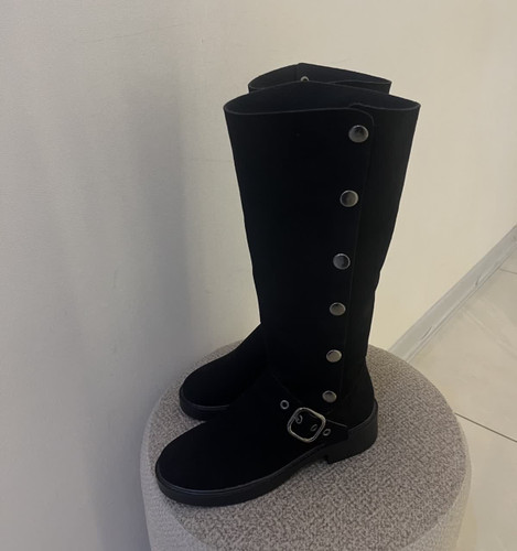 ناموجودبوت بلند زنانه جیر بغل دکمه قهوه ای