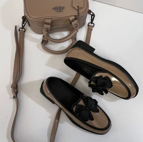 کفش زنانه مدل کالج ورنی پاپیونی نسکافه ای
