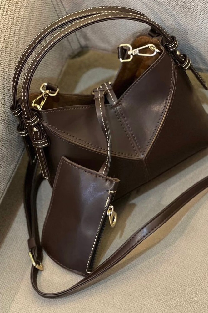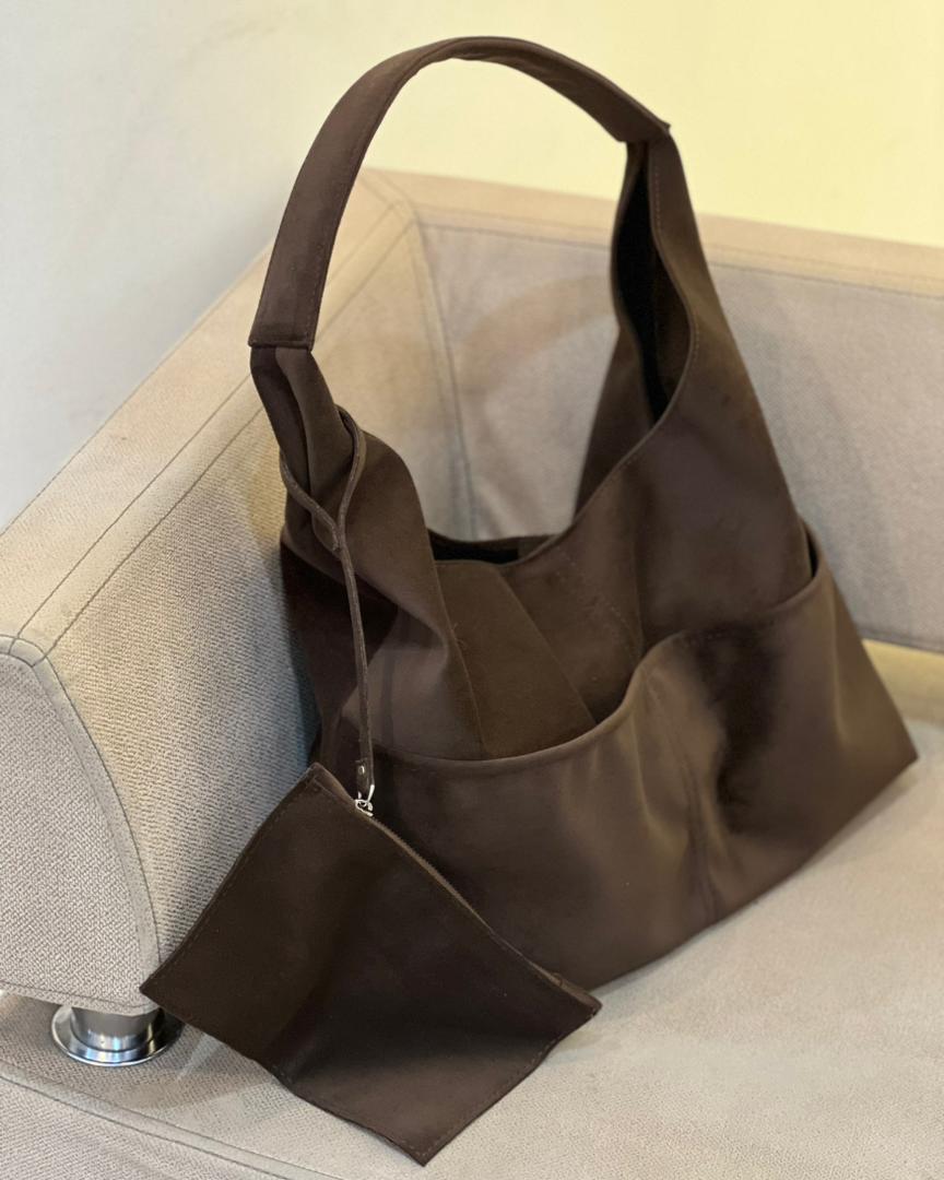 کیف دوبند قهوه ای مخمل قهوه ای جدید