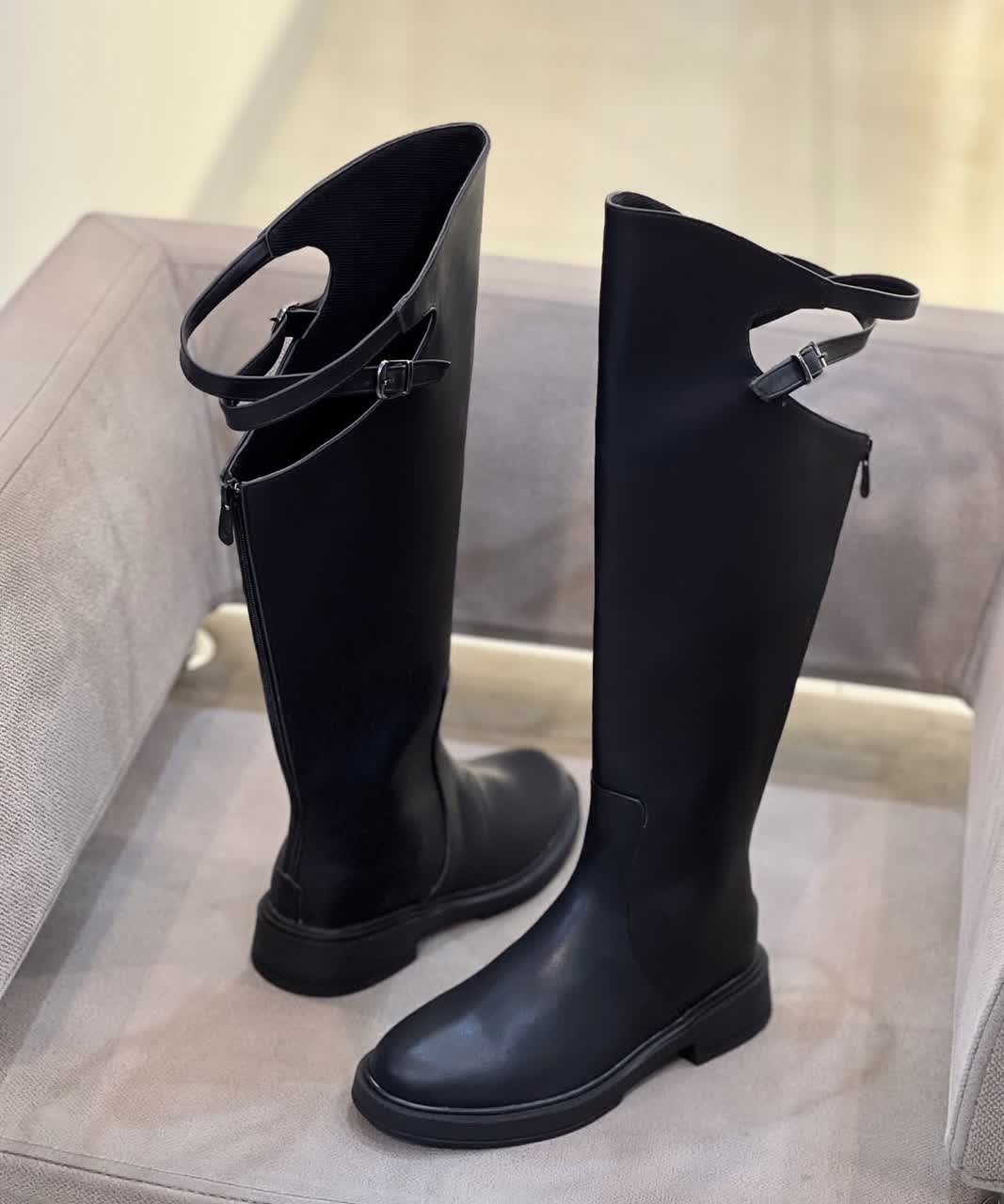 بوت بندی زنانه چرم ساده مشکی طرح زارا