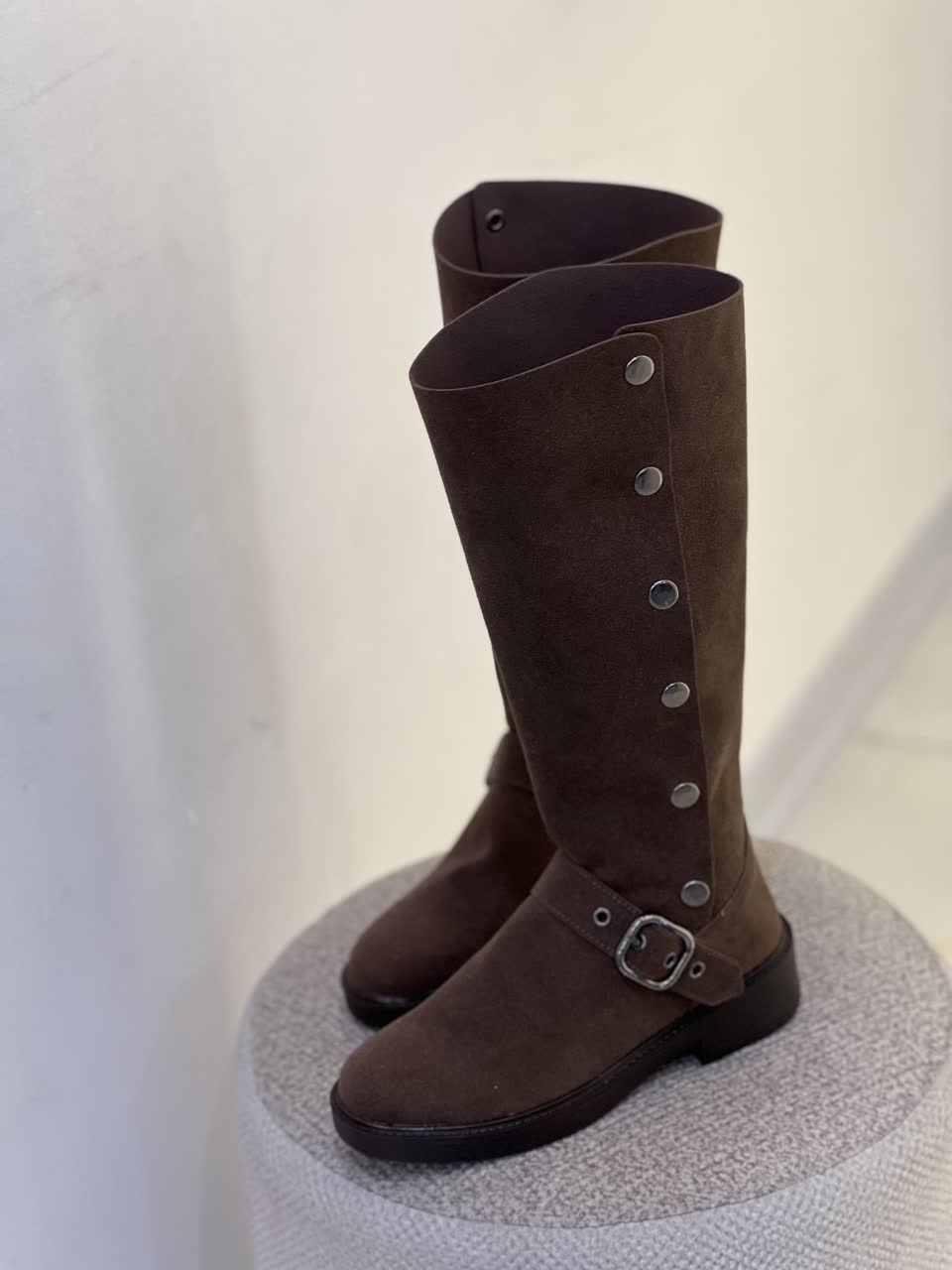 ناموجودبوت بلند زنانه جیر بغل دکمه قهوه ای