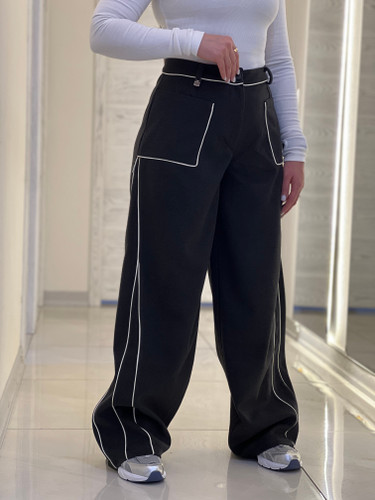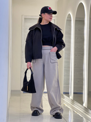 شلوار زنانه مدل بگ فوتر لامر ذغالی مغزی دوزی مشکی قد ١١٠