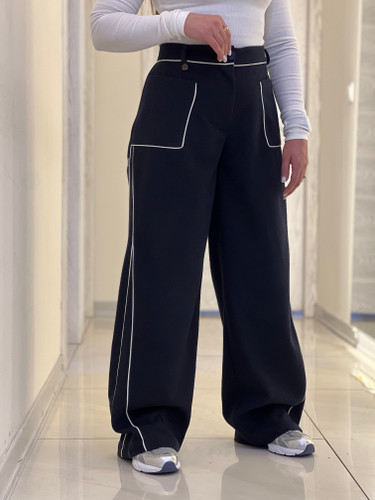 شلوار زنانه مدل بگ فوتر لامر سورمه ای مغزی دوزی مشکی قد ١١٠